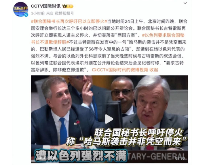 具体情况大概是这样的,古特雷斯在24日的公开会议上说,哈马斯并不是无缘无故对以色列发动的袭击,整整56年时间,巴勒斯坦人民都生活在令人窒息的侵占中。