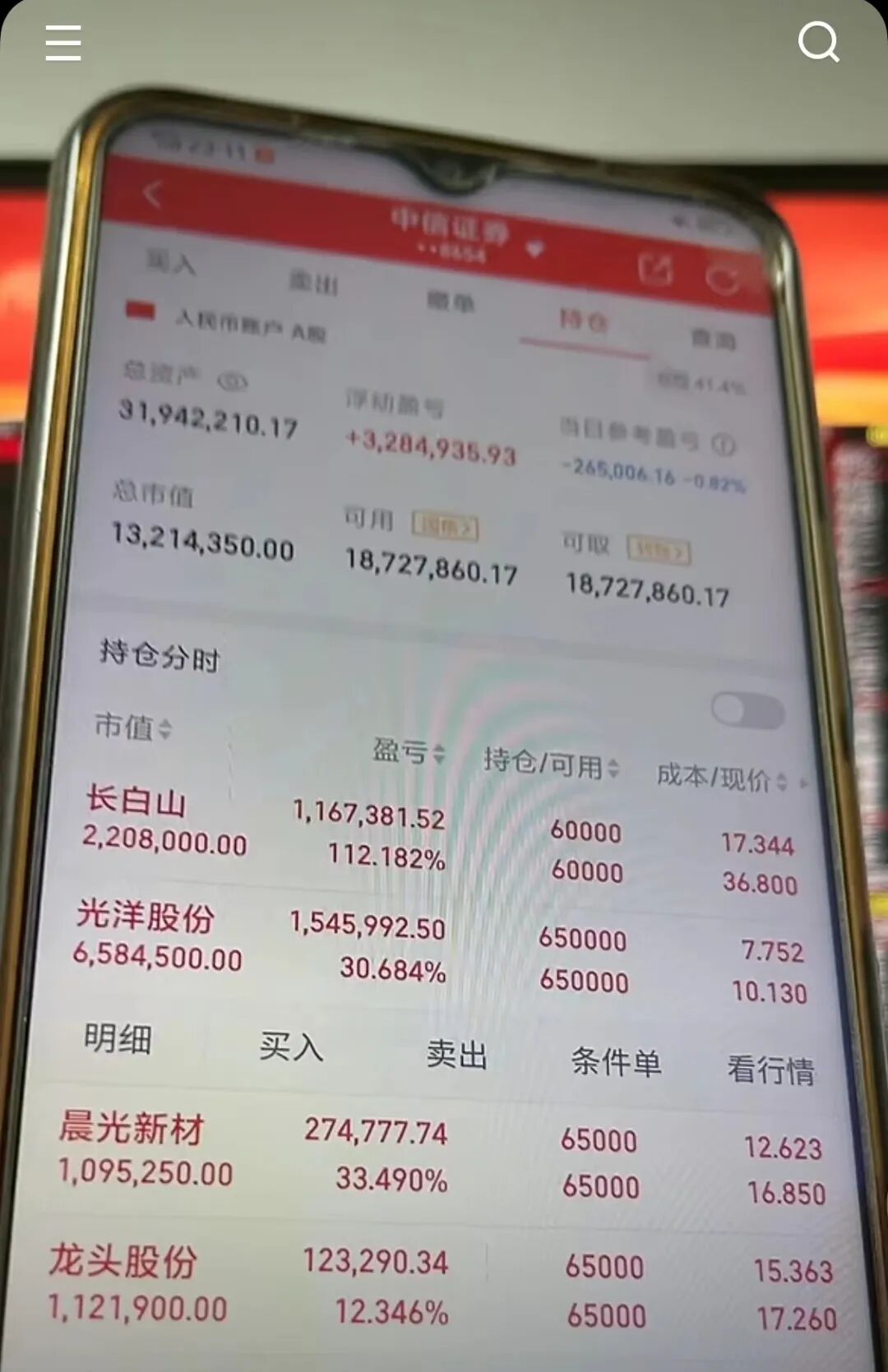 上来就展示股票App个人账户页面,有3000多万、有1000多万的,几百万都不好意思放出来,吸引了很多人观看。