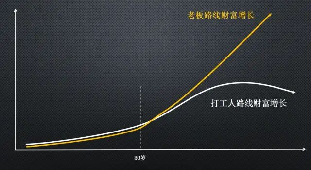 而建立起生产资料的人,财富增长曲线是这样的: