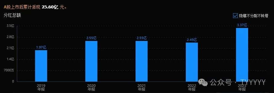 公司上市以来累计分红26.5亿,2023年预计分红0.55元/股,优秀!