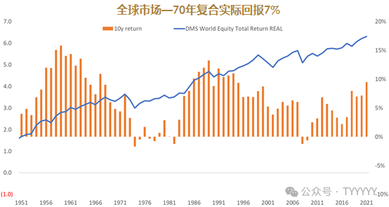 第一、收益率。既要看绝对收益也要看相对收益。我们看全球市场70年的复合回报率: