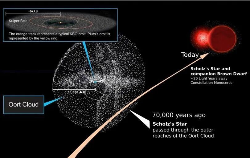 需要知道的是,太阳系真正的边界是奥尔特云,其半径大约有1光年,也就是说,按照这样的模拟结果,“舒尔茨之星”其实已经“入侵”了太阳系。当然了,这只是一个模拟结果,那么,有没有实际观测数据对其进行支持呢?答案是肯定的。