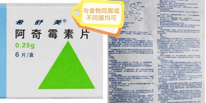 (阿奇霉素分散片,餐前一小时或餐后两小时服用)