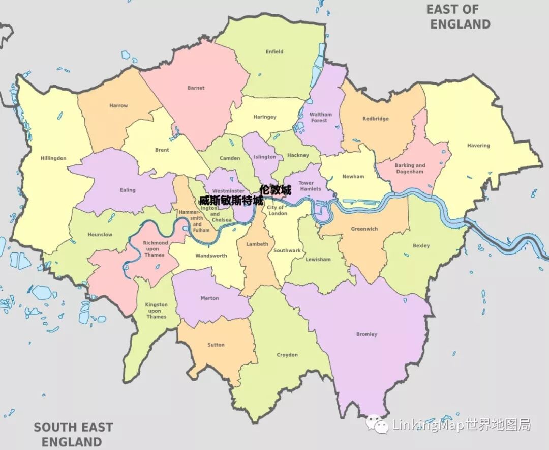 伦敦下辖32个自治市(区)(London Boroughs)和一个伦敦市,32个自治市区中的威斯敏斯特与伦敦市都具有城市地位。而其他31个自治市区和大伦敦不具有城市地位。