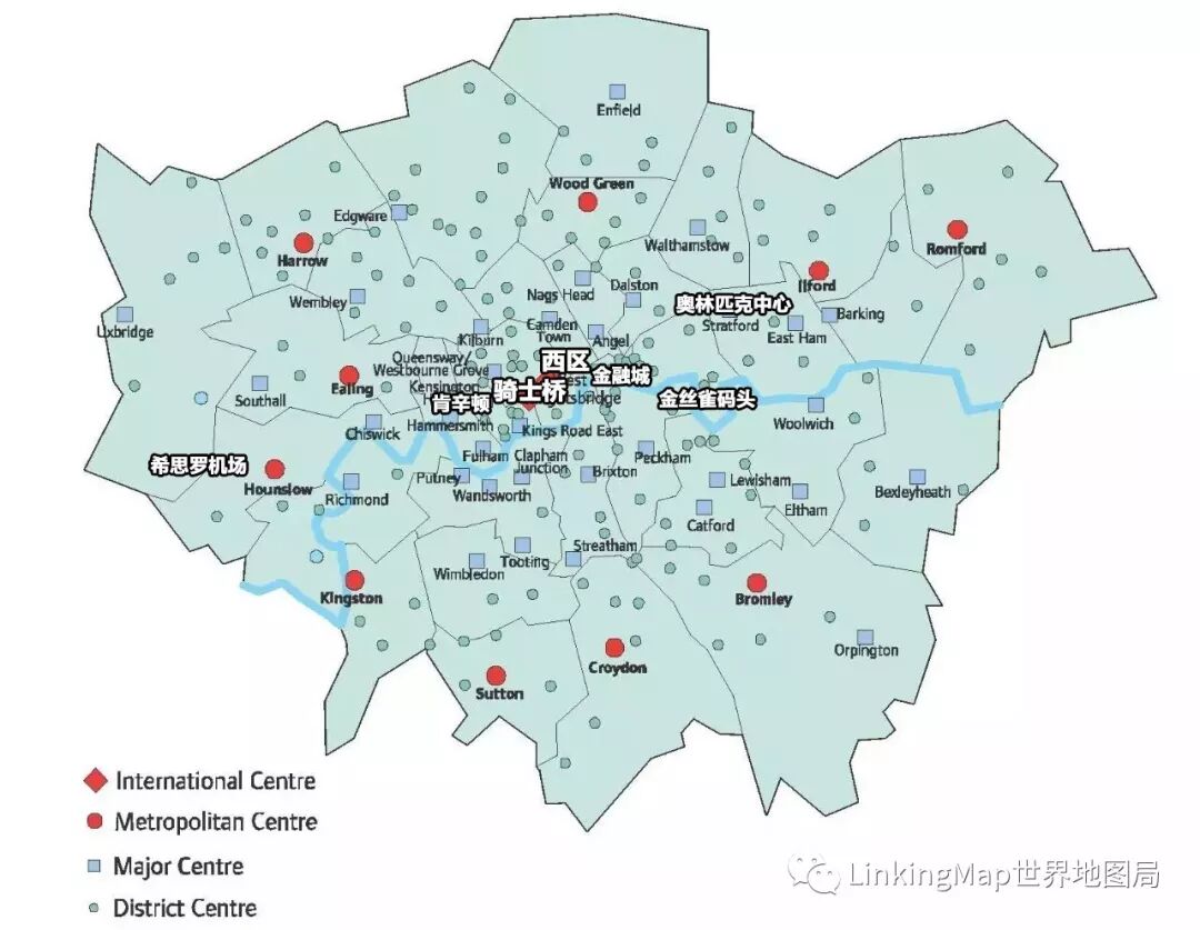 伦敦市内比较重要的活动中心包括西区(West End)、骑士桥(Knightsbridge)、金融城、金丝雀码头等。前两者是著名的商圈,后两者是伦敦目前比较重要的金融、商务办公区。