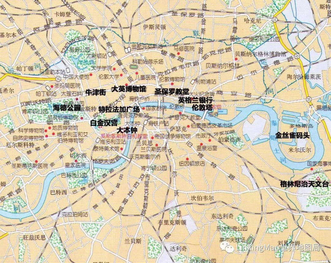 其他著名景点包括白金汉宫、伦敦眼、皮卡迪利圆环、圣保罗座堂、伦敦塔桥、特拉法加广场和碎片大厦。伦敦亦是诸多博物馆、画廊、图书馆、体育运动及其他文化机构的所在地,包括大英博物馆、国家美术馆、泰特现代艺术馆、大英图书馆以及40家西区剧院。
