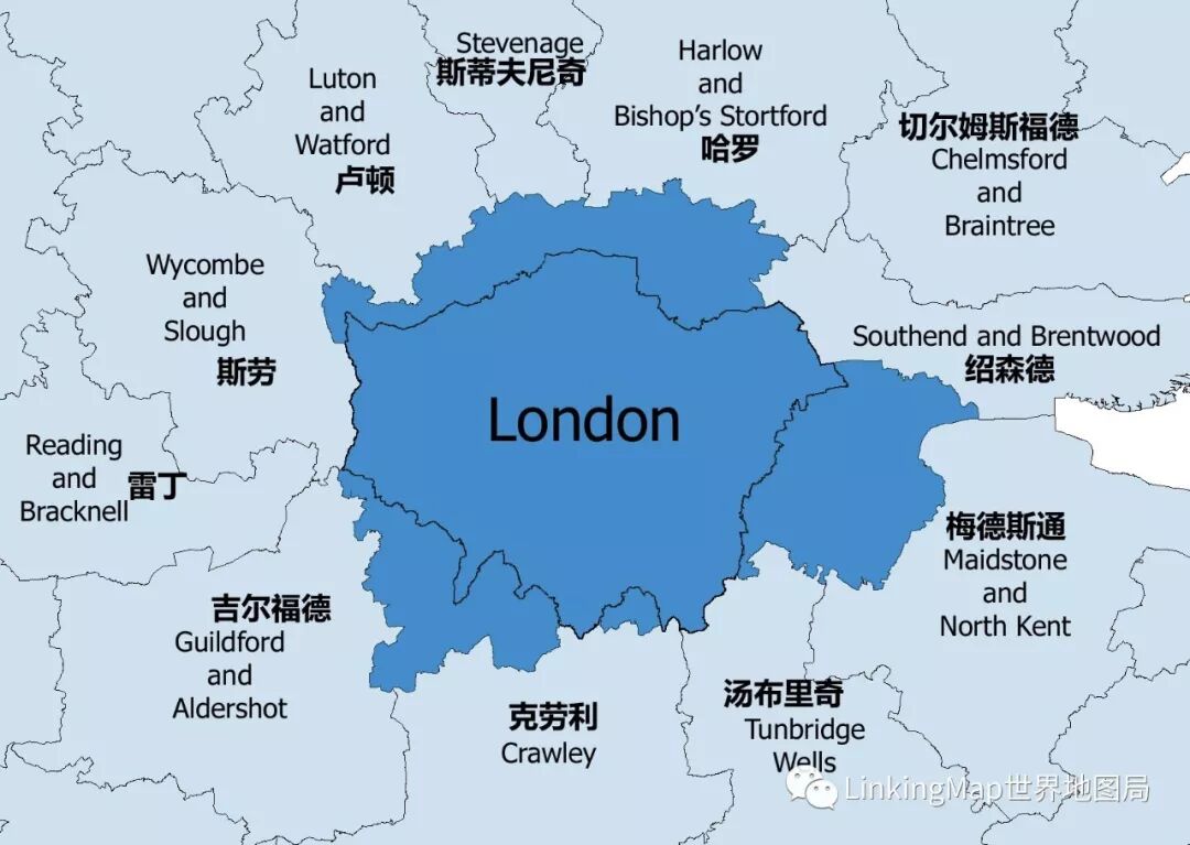 伦敦的城市建设已经扩张到大伦敦的边界以外,周边的雷丁、斯劳是比较著名的卫星城。伦敦西北方向约80公里的卫星城米尔顿凯恩斯(Milton Keynes)是世界新城建设的标杆。