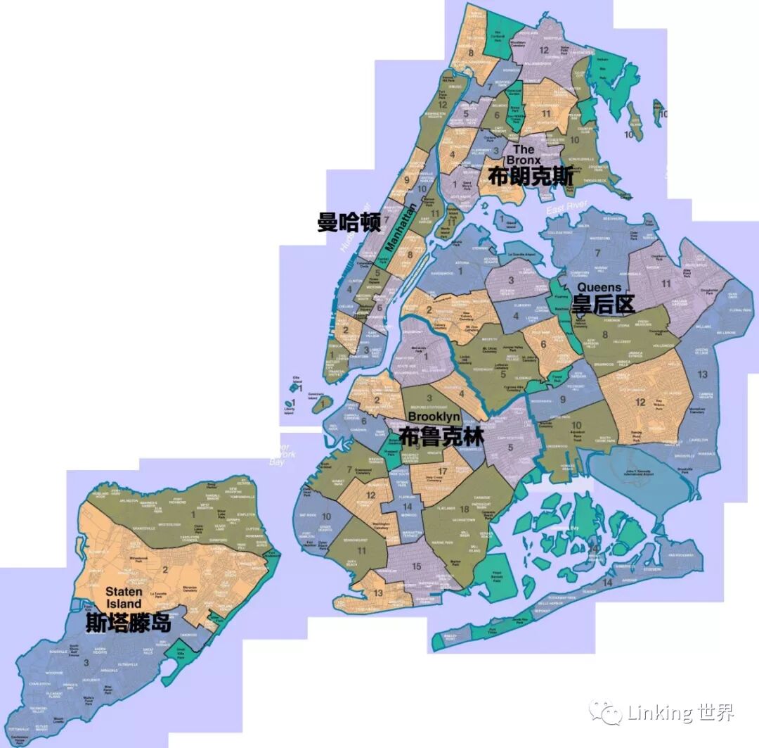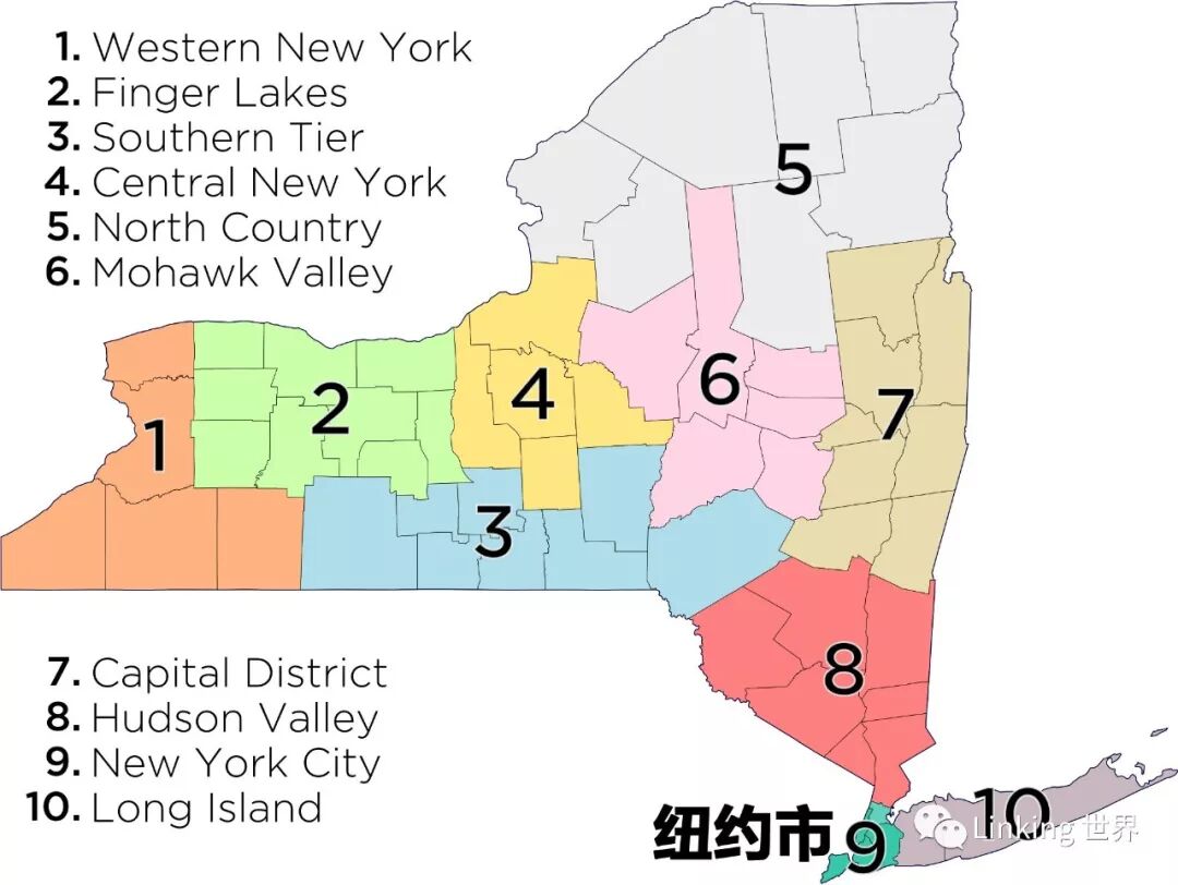 纽约市隶属于纽约州,下辖5个区。纽约市的区和纽约州的县为同一级行政单元,1898年以曼哈顿为中心5个县市合并,形成了现代纽约的格局,5个区只保留少量的司法权。