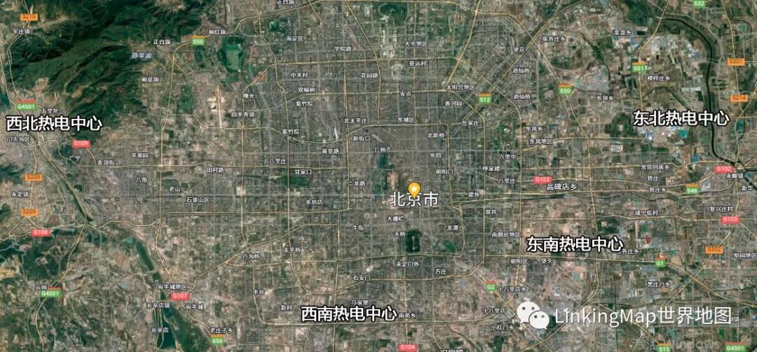 北京市内有四处燃气热电中心:朝阳区王四营的东南热电中心、丰台区草桥东路的西南热电中心、石景山区高井的西北热电中心、朝阳区金盏乡马各庄的东北热电中心。发电的同时为周边城区提供暖气。