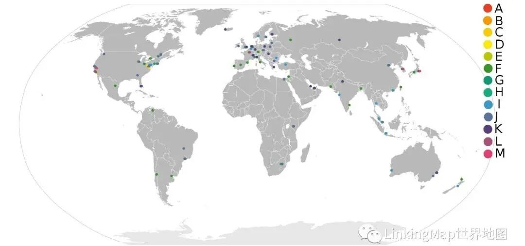 世界顶级域名服务器及其镜像分布:主要集中在重要的大城市,上网解析域名时,数据依然要从大城市转一圈