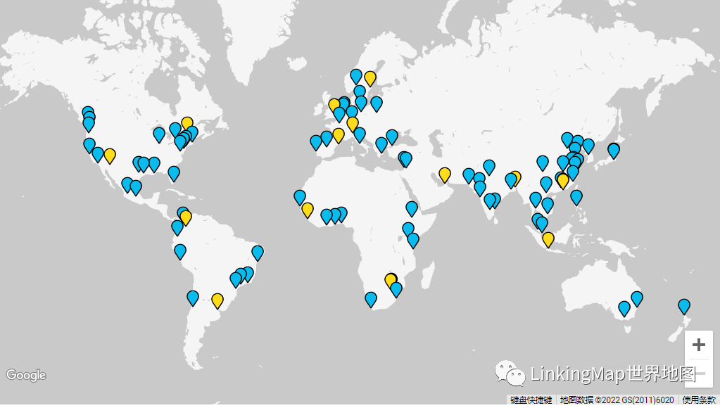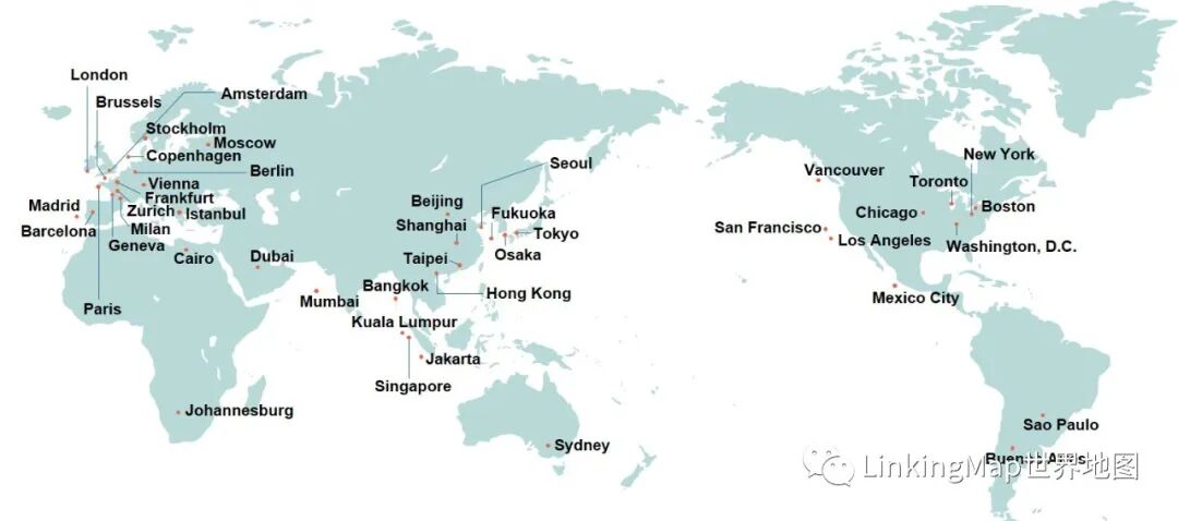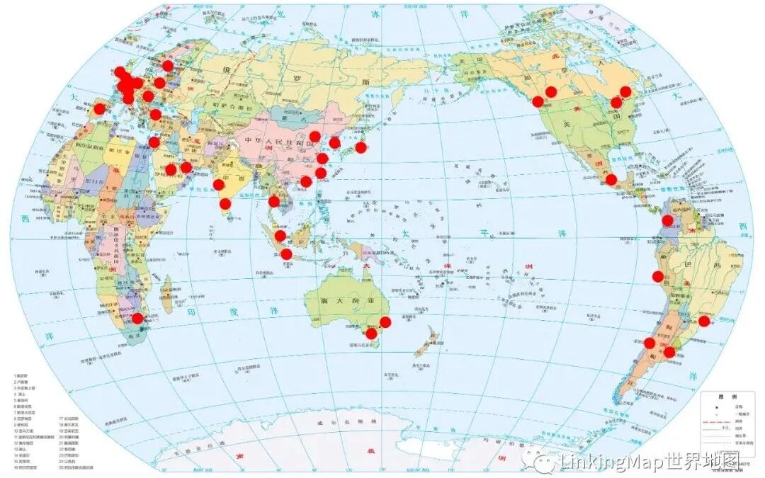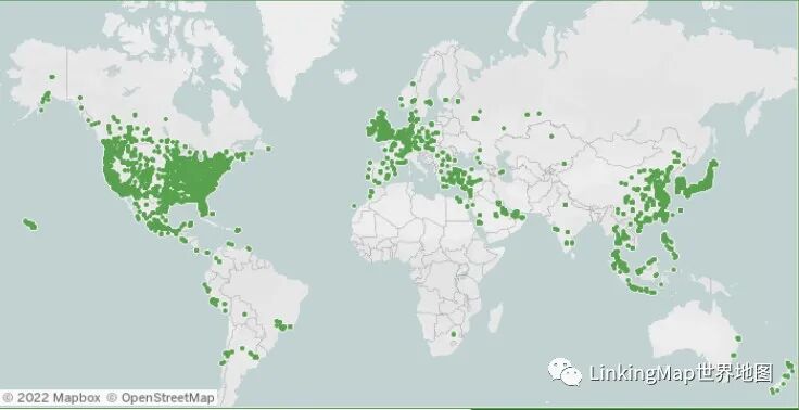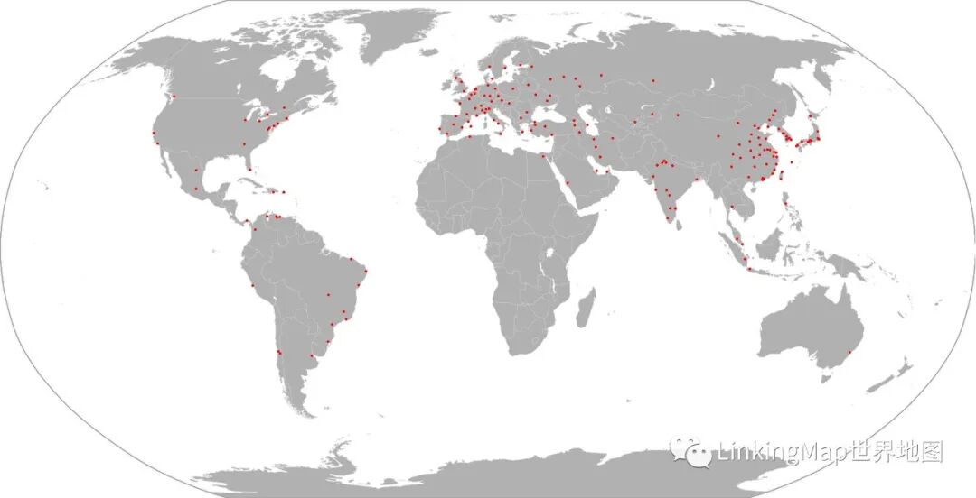 美国全球化品牌星巴克的全球分布(具体到城市),此图包含了俄罗斯的门店,现在已经关闭