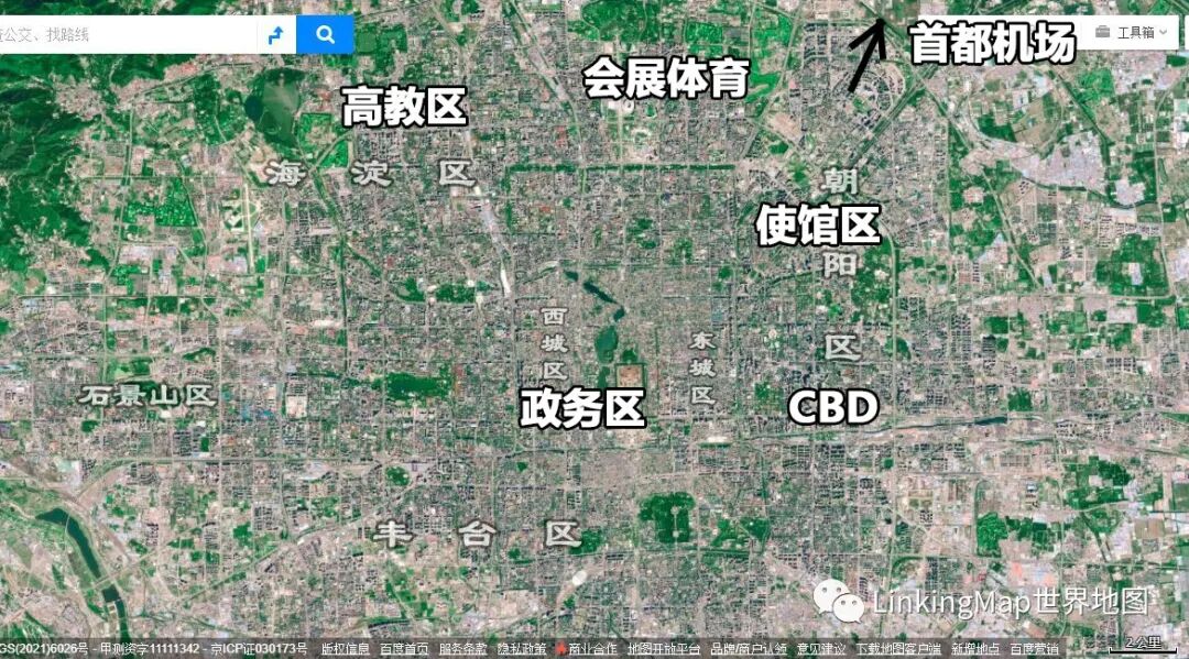 北京政务区与商务区分别明显:西边是政务、高教区,东边是商务、外交功能城区,值得注意的是,金融街位于城市西边,这与央行等机构的设立有关系