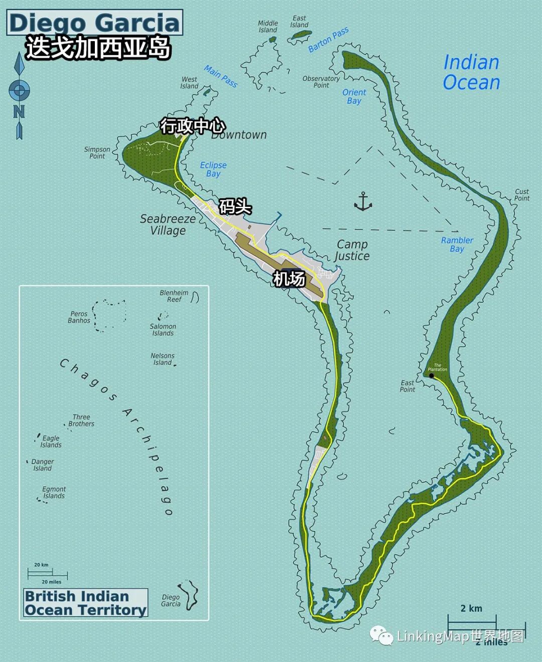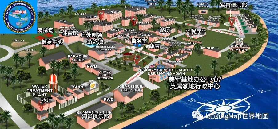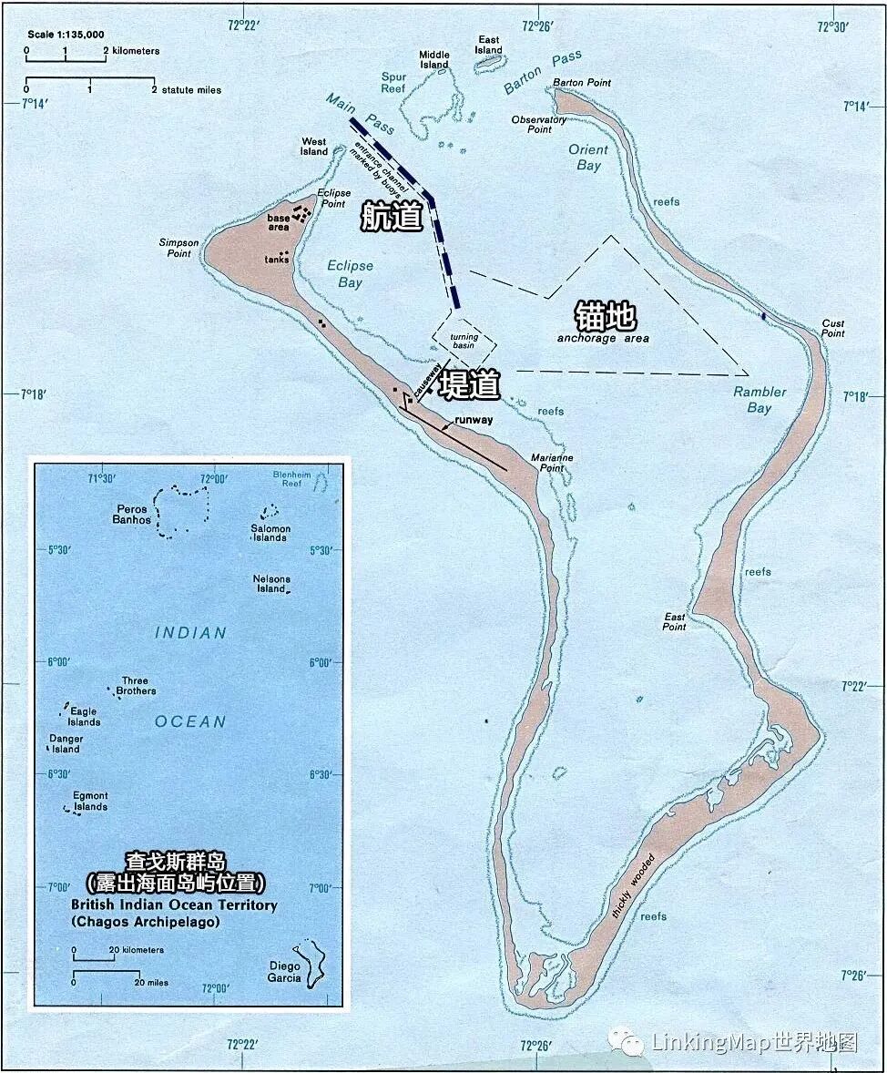 查戈斯群岛的地理位置无需多言,其地处印度洋几乎最中间的位置。从这里起飞的飞机在6个小时以内可以飞到波斯湾、红海、南海、印度、非洲东海岸等地。美军在查戈斯群岛主岛迪戈加西亚岛建设有军事基地,其在海湾战争、阿富汗战争、伊拉克战争中发挥了重要的作用。这个岛屿是美国全球海军布局的关键一环。