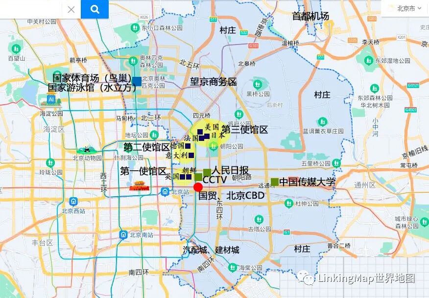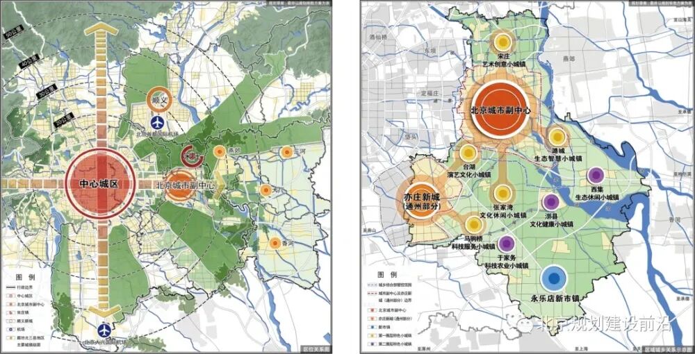 京东地区的主要功能节点:包括城市CBD、北京(地方)行政中心、使馆区、国际机场等