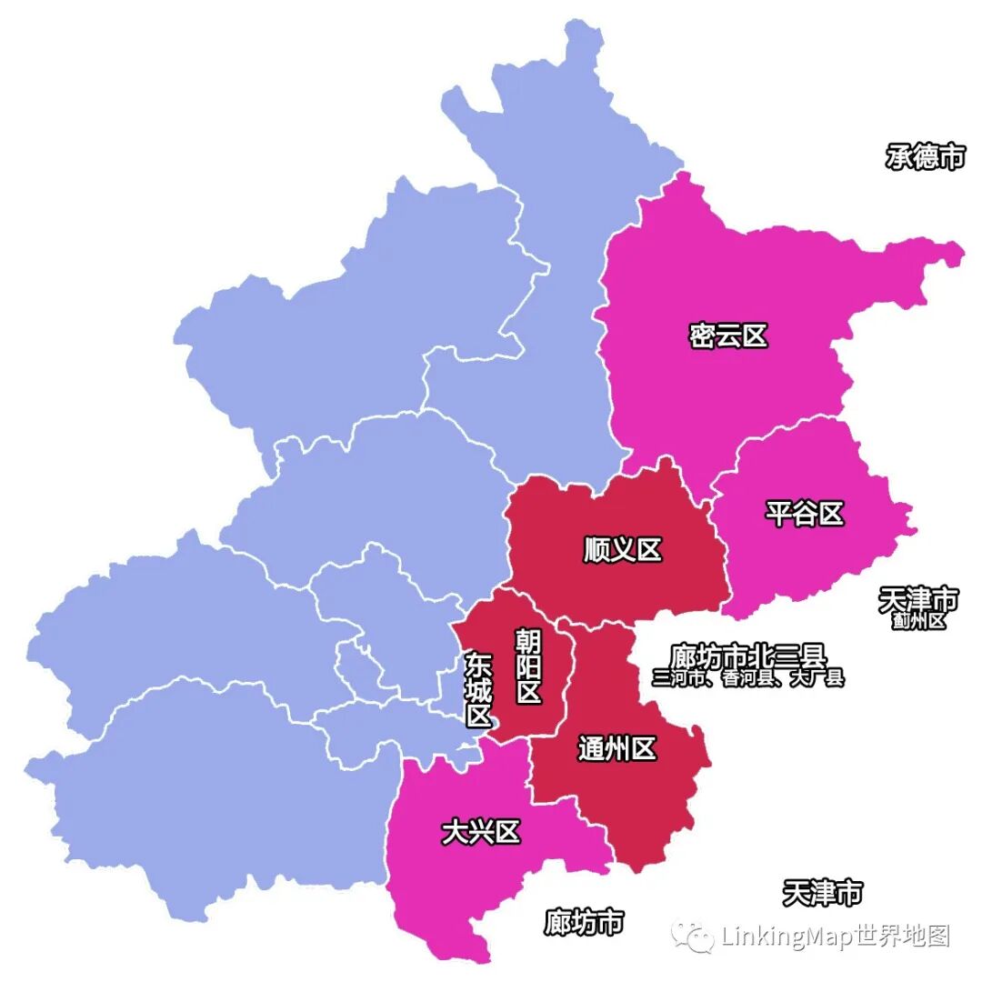 明清时期,北京城的东部就是北京地方行政机构的所在地,旧的顺天府衙门位于今天的东城区。2019年之前,北京市政府依然放在东城区,2019年之后东迁至通州区,北京地方行政治理的中心始终在“京东地区”。通州在提升为城市副中心以后,将北京城市的影响力继续东扩到北三县地区,即隶属于廊坊市的三河、大厂、香河三县市,以通州为中心,覆盖北京东部、河北部分地区、天津部分地区的新的城市圈已经开始悄然出现。东城区-朝阳区-通州区成为“京东地区”中心变迁的路径。