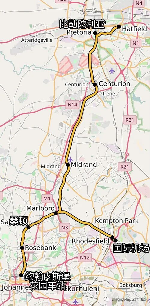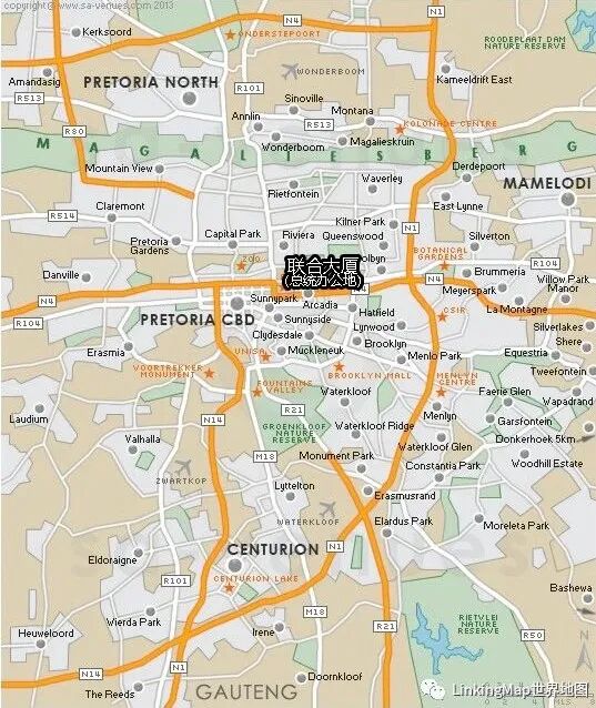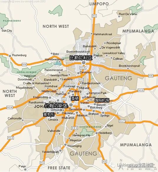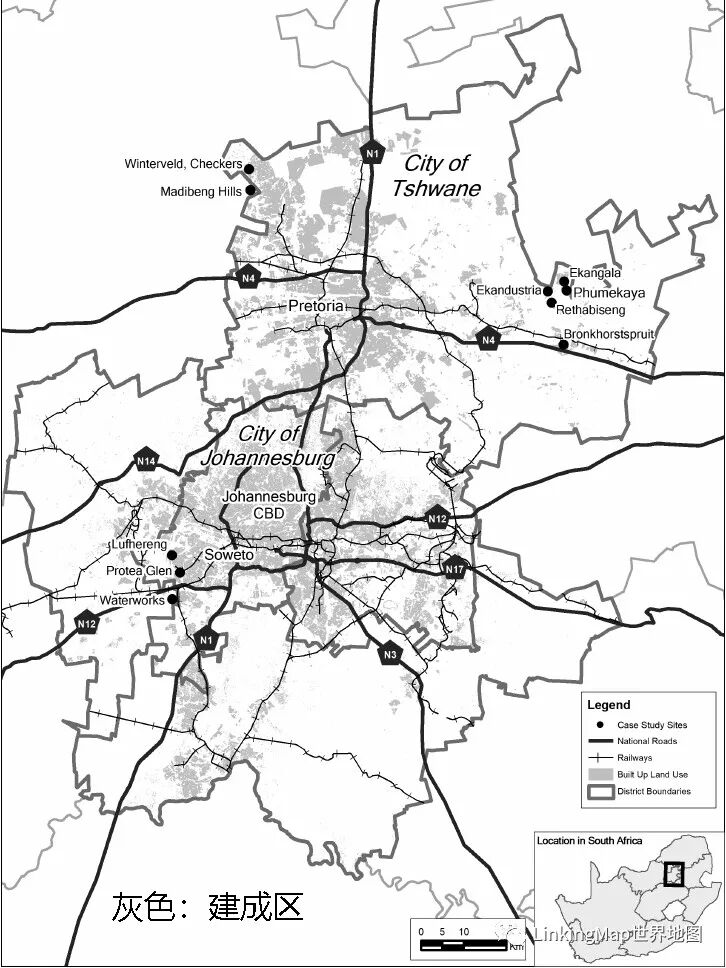 豪滕省建成区:围绕约翰内斯堡和比勒陀利亚两大城市而扩展