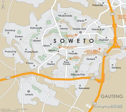 索韦托(Soweto):过去是种族隔离时期最大的围绕约翰内斯堡而建立的黑人劳工市镇。曼德拉、图图等南非著名人物都在此生活过,这里也成为黑人反抗种族隔离重要运动重地,对南非来说具有很重要的历史意义。如今索韦托已经不单纯是低收入市镇,一些黑人中产阶级和富人依然生活在此,这里的居民不全是低收入人士,新的贫富差距已经在这个市镇出现
