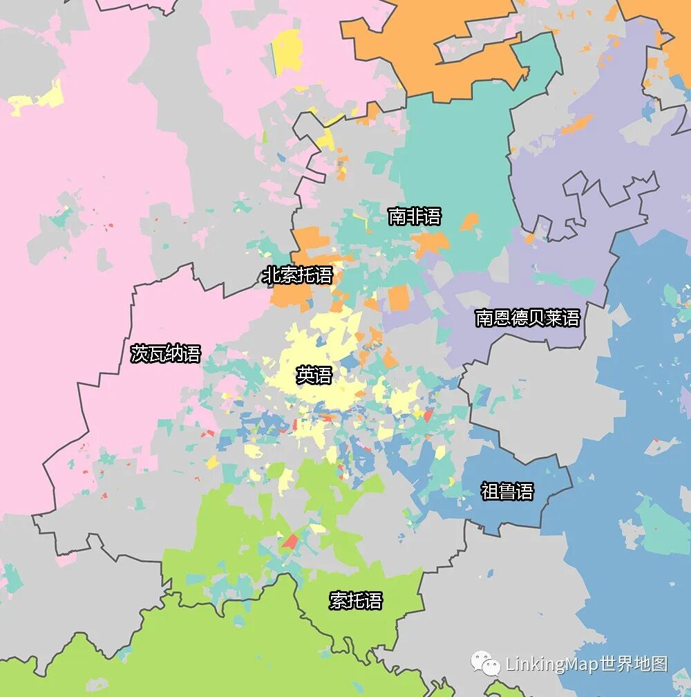 豪滕省各地区的主要使用语言:几乎涵盖了南非大部分的语言