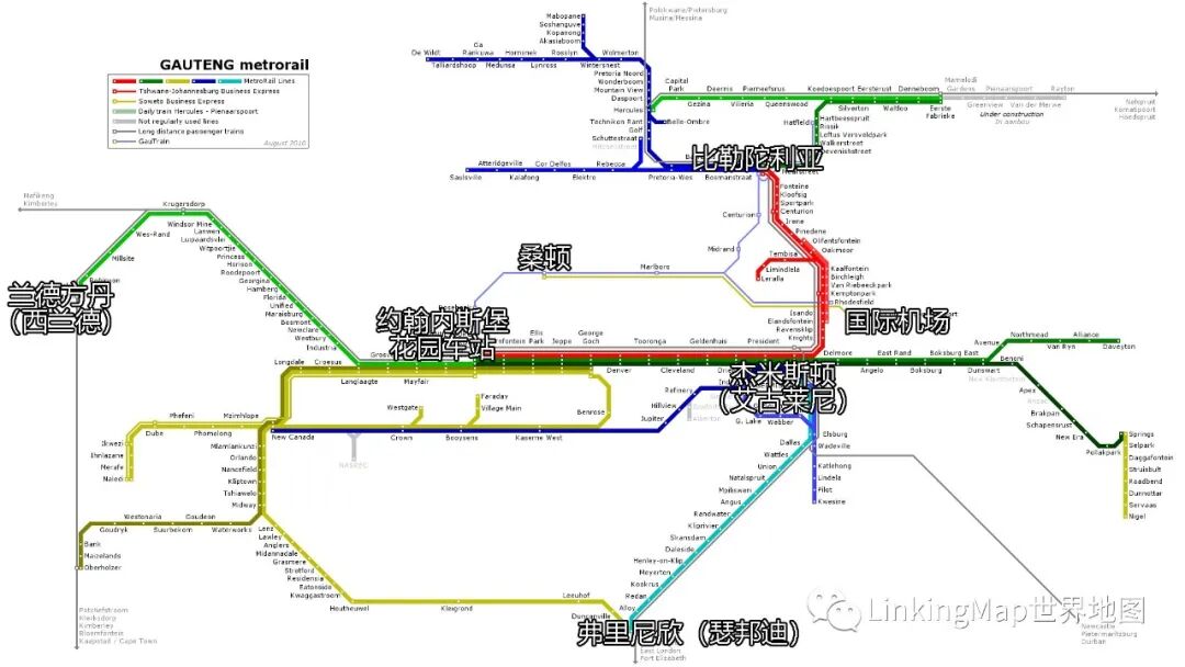 桑顿(Sandton):近年来在大约翰内斯堡范围内崛起的新兴商务区、商业中心,已经吸引多家跨国公司在此设立全国乃至全非洲的总部,成为全球城市体系在非洲最重要的节点之一。约翰内斯堡市中心治安不稳定,一些大公司搬迁到周边的片区或市镇,这些片区公共交通较稀疏,主要需要通过自驾汽车前往,增加了低收入人士前往的难度。这类公共交通阻隔但整体富裕的片区或市镇,在美国也出现过类似的现象,即“边缘城市”现象,市中心衰败后,都市区的经济活动中心转移到一些非中心、公共交通较为落后的边缘市镇或片区,这些新片区取代了传统CBD成为都市区新的商务和高端商业中心
