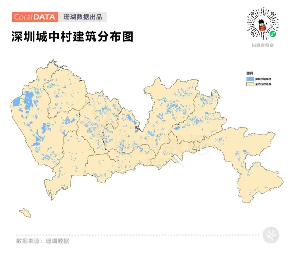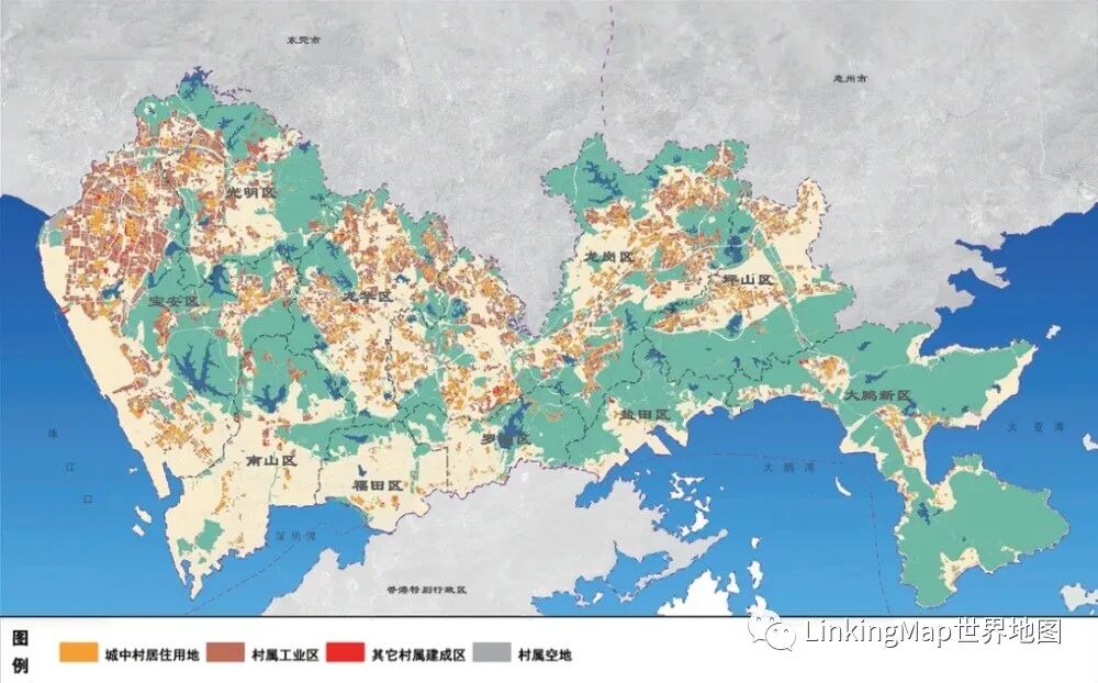 深圳城中村:集中在传统关外地区,快速涌入的人口产生了巨大的住房需求,传统村落成为提供住房的补充体系,当农田被征收后,宅基地上建起纯粹为了出租的多层住房,形成具有一定特点的城中村聚落