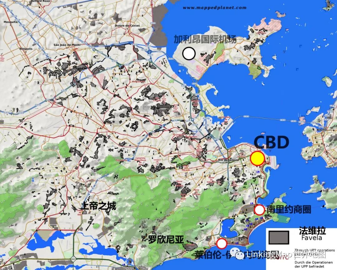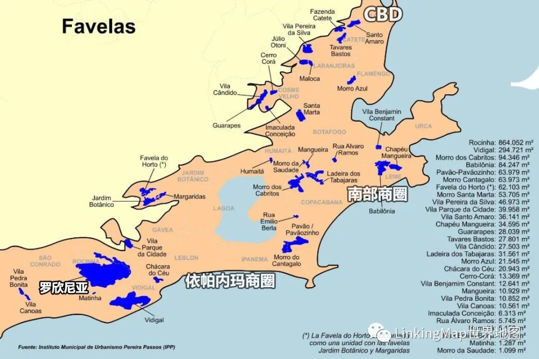 巴西里约热内卢南部贫民窟(法维拉)分布