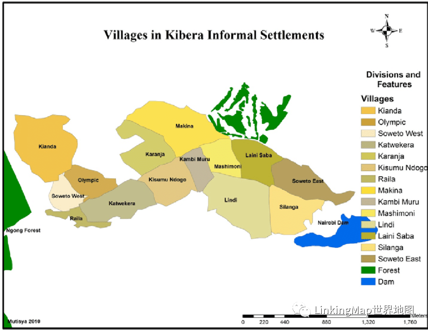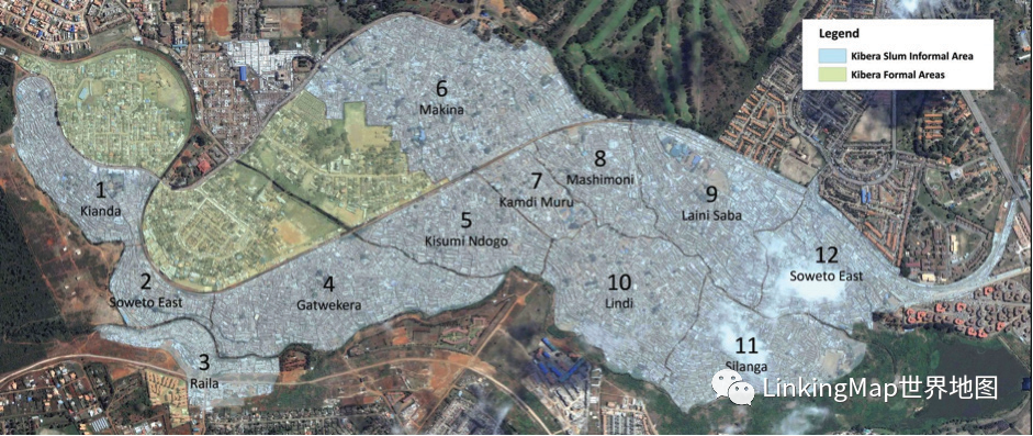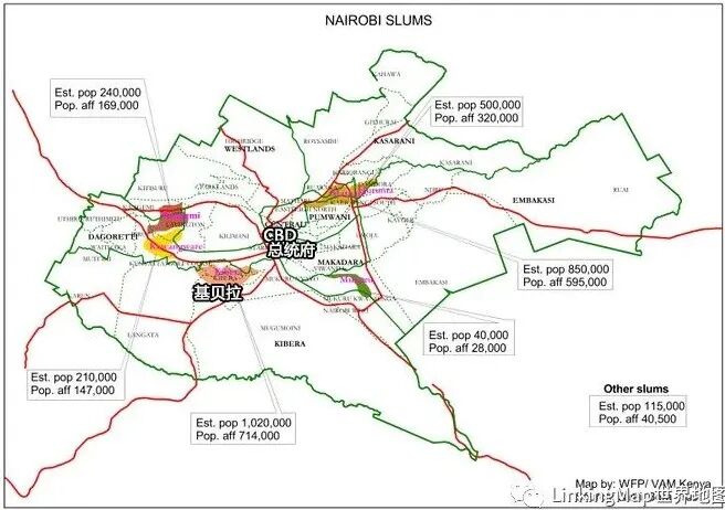 肯尼亚内罗毕贫民窟及主要城市节点的分布
