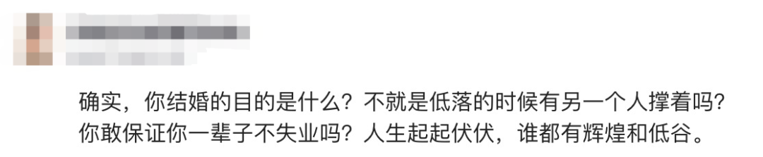 有相同经历的网友分享,她的另一半曾经也是经历了半年多的求职空窗期,那段时间心情极差。不过,最终走出低谷,重返职场的他,对妻子的理解和支持感激不尽,这段经历不仅没有让他们的关系受损,反而让双方的信任和依赖更加深厚了。