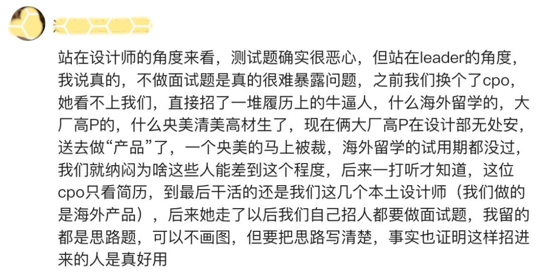 有网友打趣,认为设计做测试题是很正常的事情。对于设计面试中的测试题,不同的人有不同的看法。