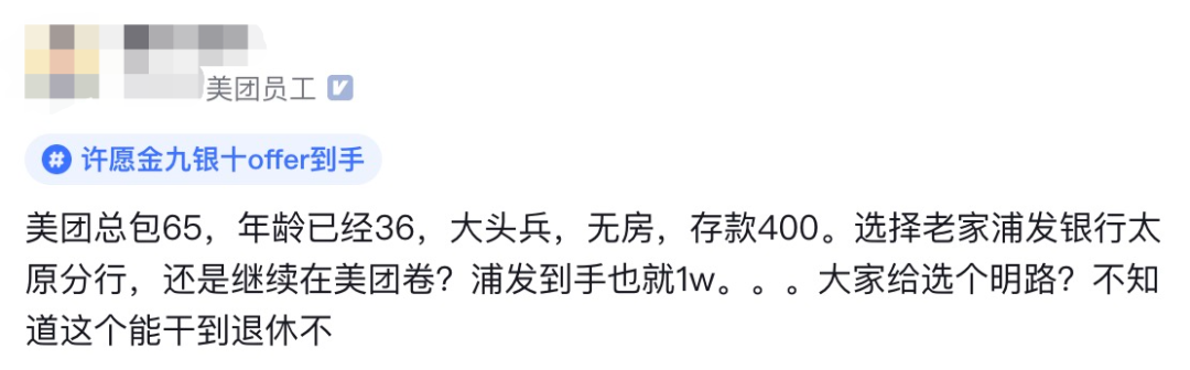 当然,银行工作的薪资远低于他在美团的收入,这让他犹豫不决。