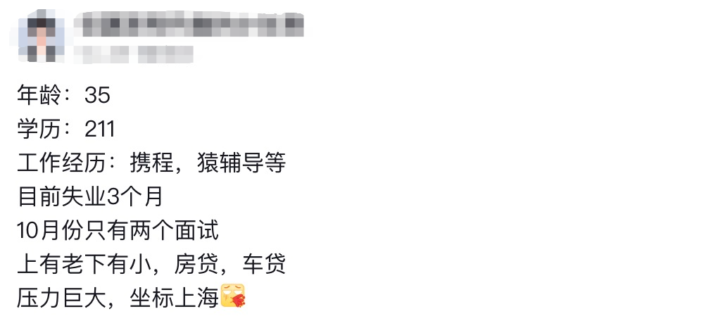 一位曾在携程和猿辅导工作过的程序员,211毕业,刚好就在35岁的年纪被裁员,目前失业3个月,面试的机会很少。