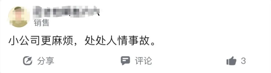 也有人吐槽,小公司让他觉得最麻烦的是人情世故的处理。
