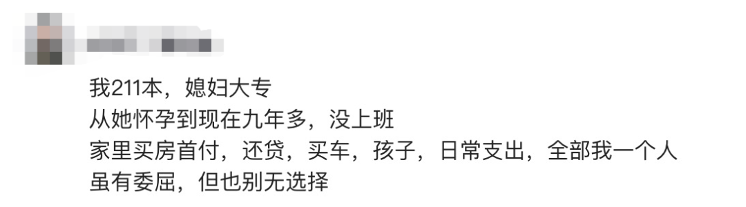 有的网友分享自己的妻子在家照顾孩子和处理家务多年,虽然没有工作,但她为家庭做出了巨大的贡献。尽管这位网友偶尔感到委屈,但他们的生活仍然在继续。