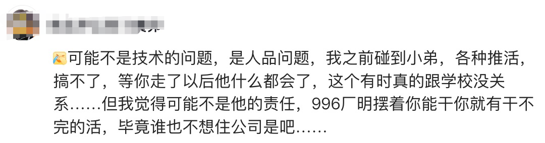 有些网友看待这个问题的角度挺有意思,他认为,要珍惜这些经常出错,工作不完美的新人员工,因为那些让你觉得舒服,能力又强的新人,最后就会是你的替代品...