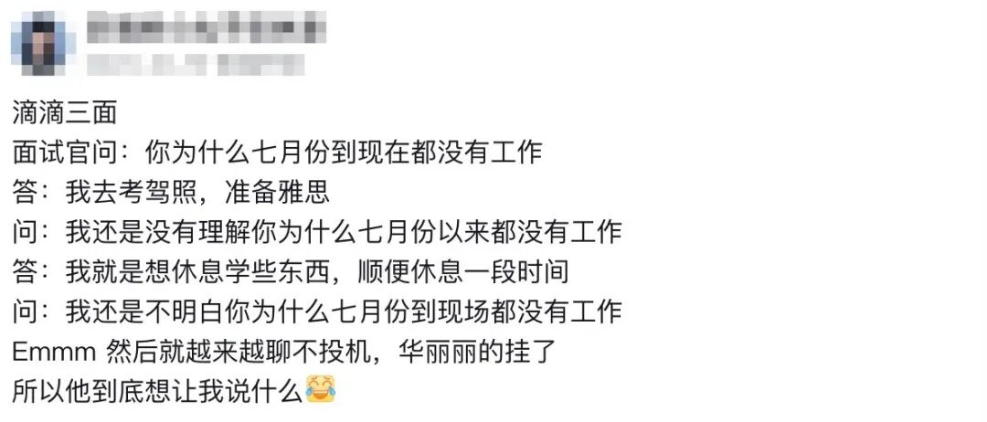 应聘者只能再次强调自己想休息一段时间,同时学习新东西。可面试官依然不满足,继续追问。最终,这次面试以失败告终。