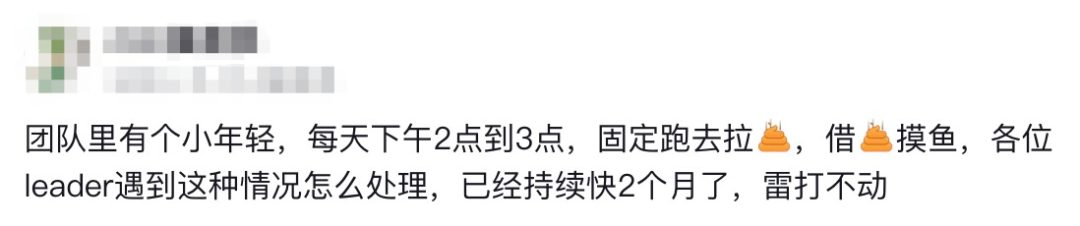 有网友提到,他们部门有人会记录员工上厕所的次数和时间,一旦超时,就会通过聊天软件召唤他们回到工位,这种高压的工作环境同样令人不安。