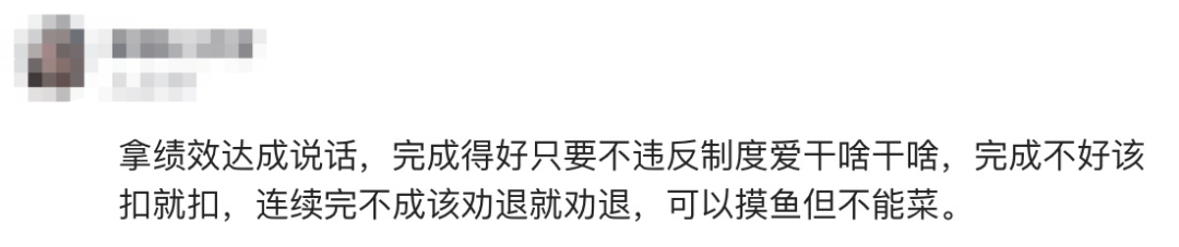 有些网友认为,领导应该通过绩效和产出来约束员工。在不影响工作的前提下,员工爱做什么就做什么。以工作时长来判断和要求员工,是一种被淘汰的管理方式。当然,如果员工既无能力又不达标,还经常摸鱼,那就应该被淘汰。