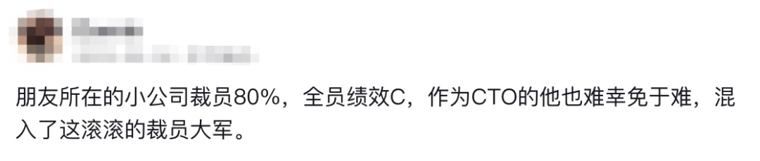 一个大型互联网公司的CTO也被这波裁员的大浪卷走了,真是风云变幻啊。他们公司打算裁掉80%的员工,就留下足够的人手维持目前的线上服务,并且,所有员工今年的业绩评估全都是C级,他们不打算再投入研发或拓展新项目了...