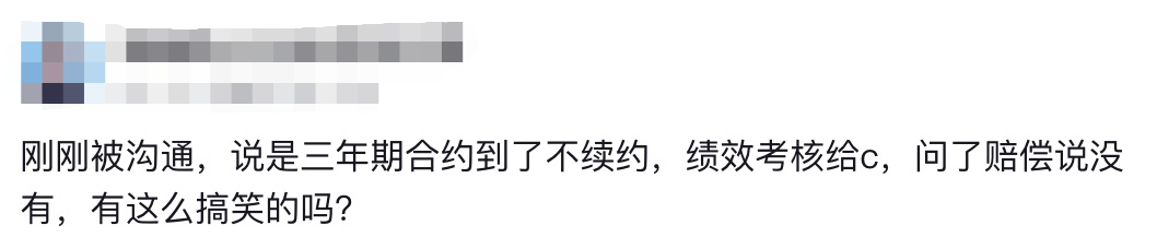 一位大厂的后端工程师分享了自己的遭遇,他的三年劳动合同即将到期时,公司决定不再与他续约,并给了一个C级绩效评价,还说赔偿也没有。