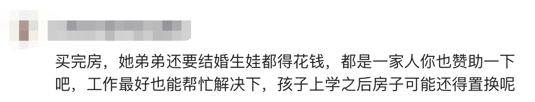 有网友分析,这位丈母娘还没把女儿嫁出去,就已经开始想着让准女婿出手相助自家儿子买房了,这要是结了婚,以后的日子里,什么贷款啊、买车啊,岂不是说要就要?