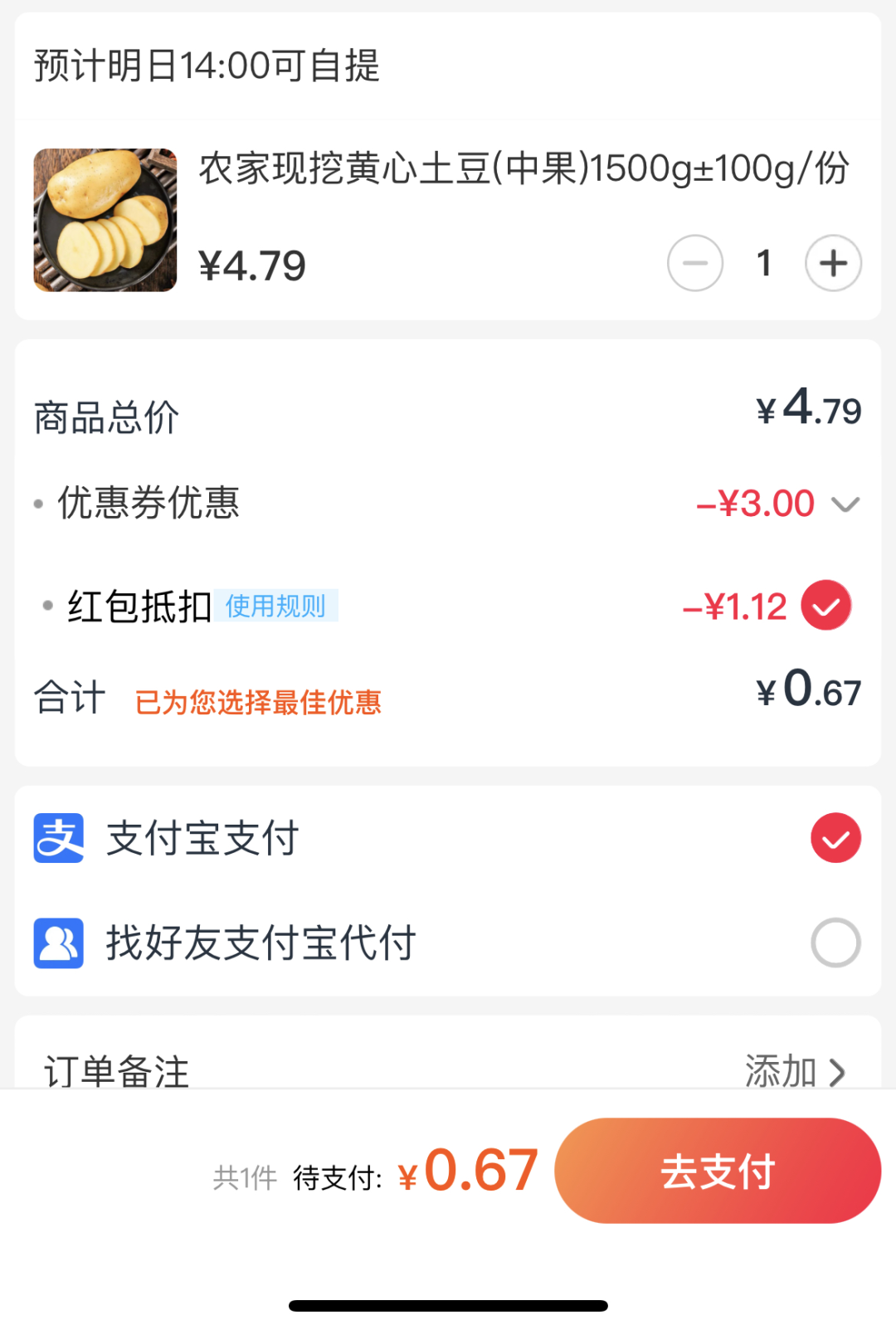 淘特顾名思义就是🍑的特价版,里面我常用的就是淘菜菜,今日买次日自提。