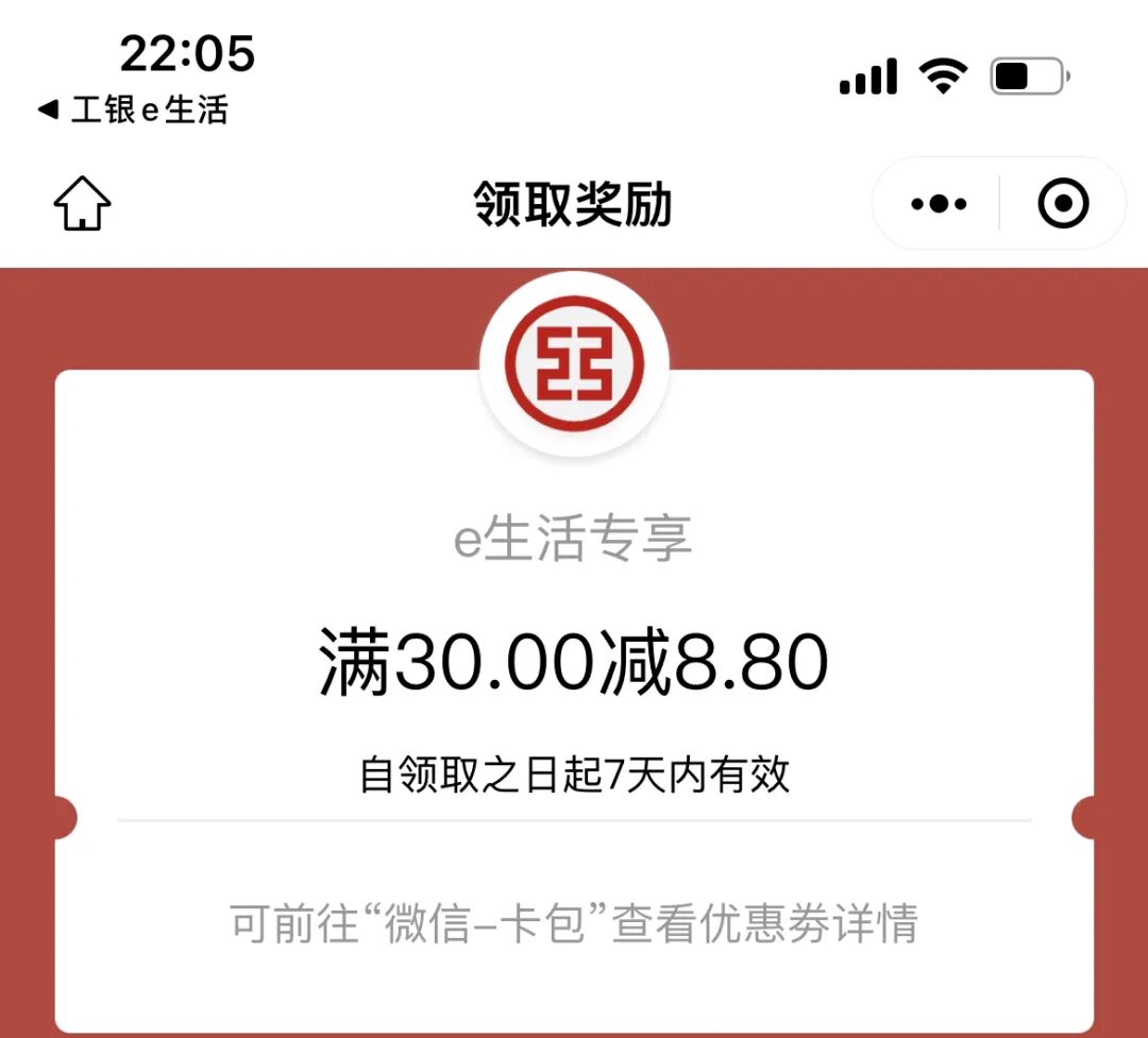 最近我在工商银行就领了十好几块了,那些运气好的,抽一下就有88元立减金。