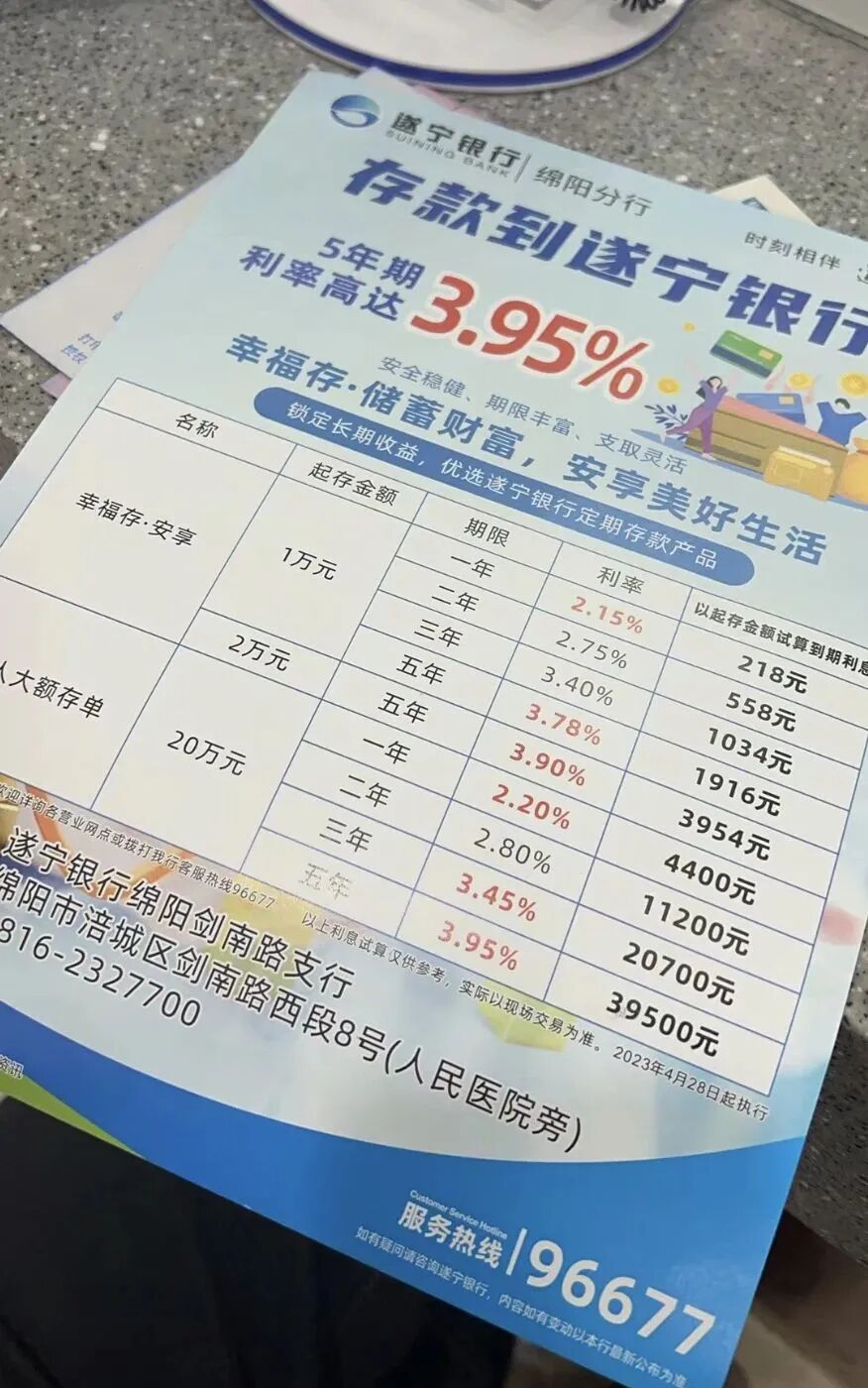 还有遂宁银行的五年期最高3.95%,看页面也是四川的,真香啊。