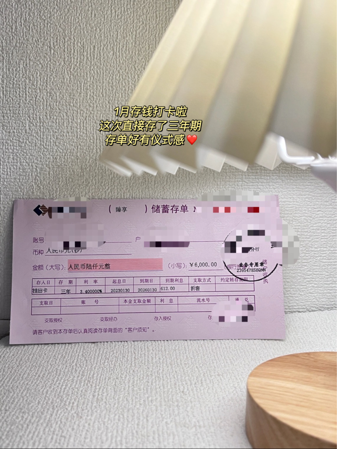 友友们好,今天来po下存单,大楠我呀,一月份存钱6000块哦。
