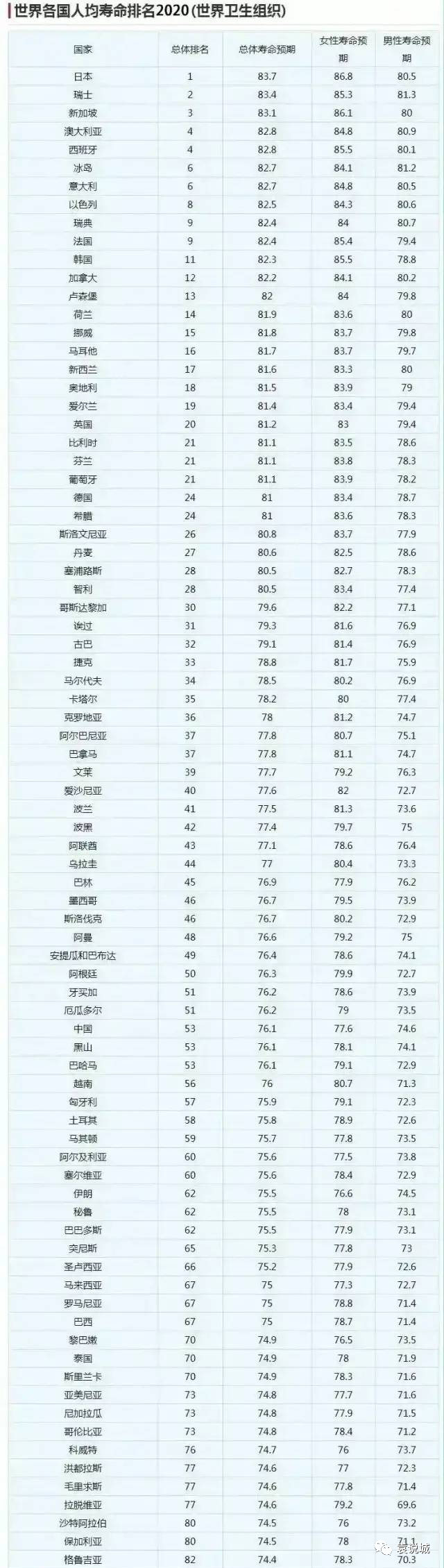 2023年的全球平均寿命数据再次引发了人们对长寿与城市发展之间的关系的关注。日本继续以令人瞩目的寿命水平位居全球榜首,这背后反映出了其卓越的医疗体系、健康生活方式和饮食习惯的秘诀。与此同时,以色列的寿命超越了法国,强调了不同文化对长寿的影响,包括强调健康饮食和体育锻炼。