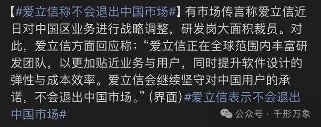 很明显,裁员不表示退出中国市场,中国市场这么大,爱立信不可能真的退出。所以爱立信的回应没有回应裁员问题,没回应表示默认了。