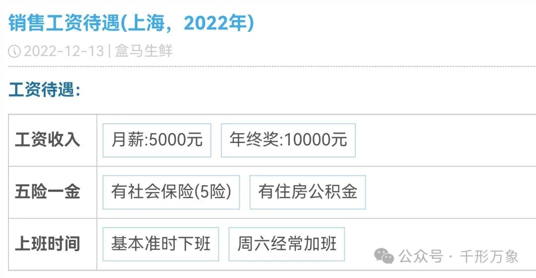 ● 部分盒马鲜生员工爆料的薪资待遇情况