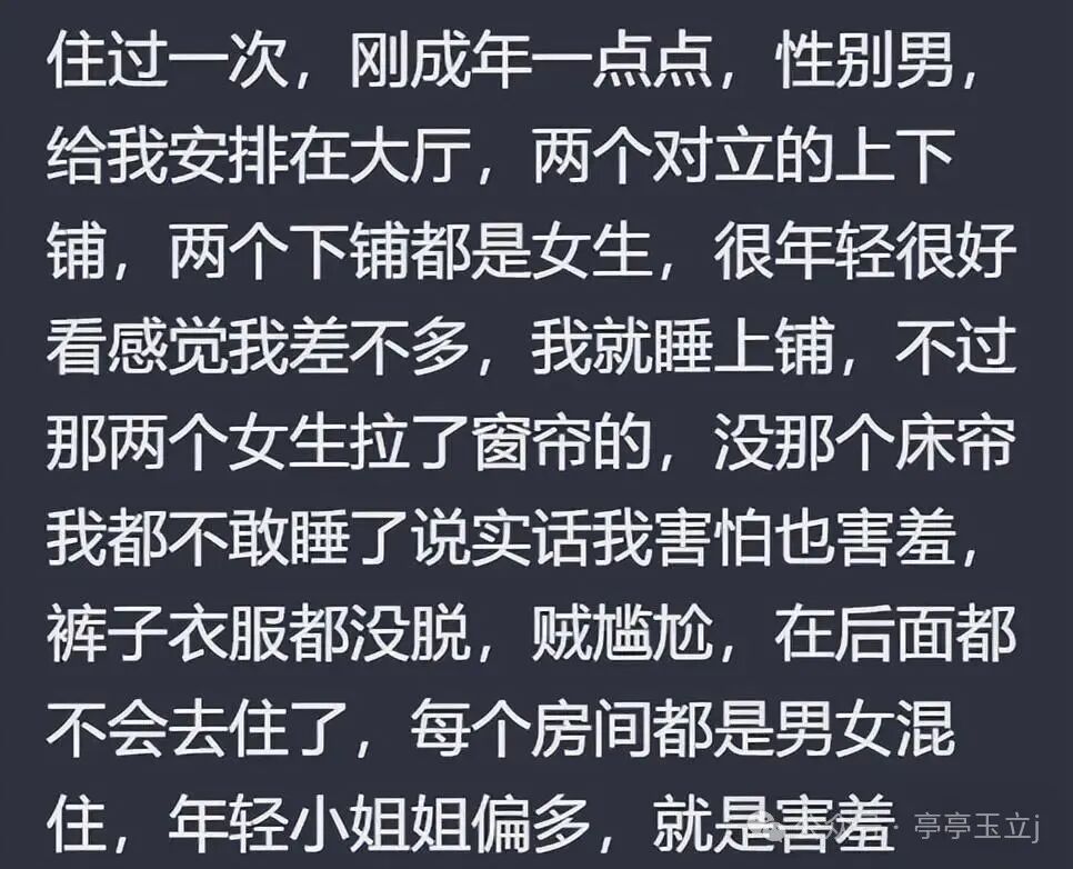 还有网友分享了一些关于国外旅行的拼房经历,他们所选择的是多人间拼房,然而在入住时却出现了一些令人意想不到的尴尬情况。特别是在一些国外青年旅舍,所谓的多人间其实就是将床位挨在一起,这样的拼房形式让人感到十分意外和尴尬,也给彼此的隐私空间带来了挑战。
