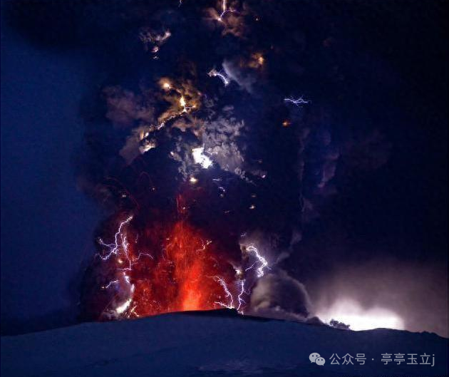 这是一张非常神奇的自然景观,可以看到在一片火海之中,竟然还有一道闪电,而且不止一次,这就是著名的火山闪电,因为在火山爆发的时候,会有大量的火山灰和岩石喷射到空中,而在这个过程中就会产生静电,形成闪电。