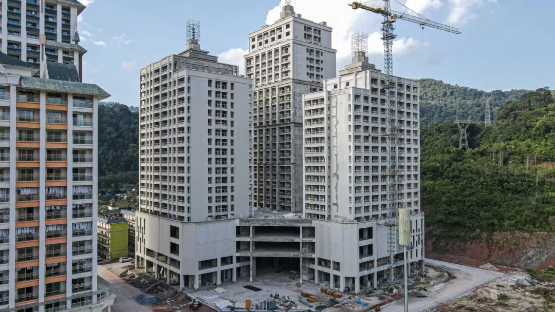 N09地块A、B、C塔主体均已封顶,外墙抹灰砌体完成,消防楼梯栏杆安装、西侧管网工程完成。