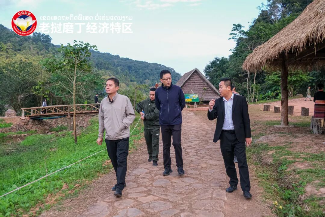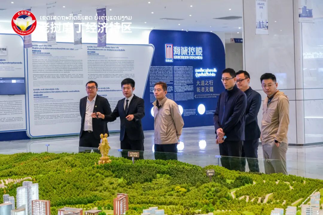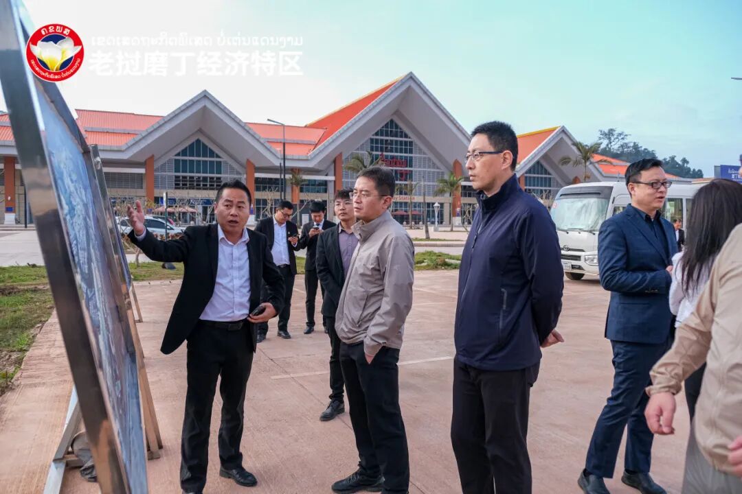 考察组一行先后参观磨丁经济特区规划展示中心、合作区老方围网区域、磨丁口岸、物流园区、两湖文旅片区、免税商场等地点,实地了解磨丁经济特区产业规划、合作区围网工程进度、公铁客货运概况、文旅产业开发情况、招商引资优惠政策以及公司发展历程,对磨丁经济特区产业定位、区位优势、交通优势予以肯定。